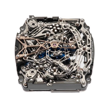 机芯作为腕表的核心,是RM 41-01的最大亮点之一。该腕表搭载的RM 41-01钛合金机芯,由RICHARD MILLE与Audemars Piguet le Locle联合研发,耗时五年从零打造,是一枚取得专利认证的全新陀飞轮飞返计时机芯,其复杂程度媲美品牌顶尖机芯作品。机芯采用微喷砂五级钛合金打造,底板与桥板经过高度镂空处理,为内部650枚精密零件预留充足空间,既有效减轻腕表重量,又能清晰展现机械运转的精妙韵律。